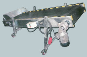 CINTA TRANSPORTADORA ESPECIAL Cinta transportadora especialmente diseñada para la extracción de piezas de una máquina punzonadora de chapa, adaptada en dimensiones y morfología para su introducción bajo la máquina objeto de la aplicación.