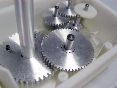 Su parte mecánica está integrada básicamente por un pequeño reductor de velocidad que aporta una elevadísima relación de transmisión, variable según el tren de engranajes escogido, para adaptarse con una misma estructura a distintos pares y velocidades de accionamiento.